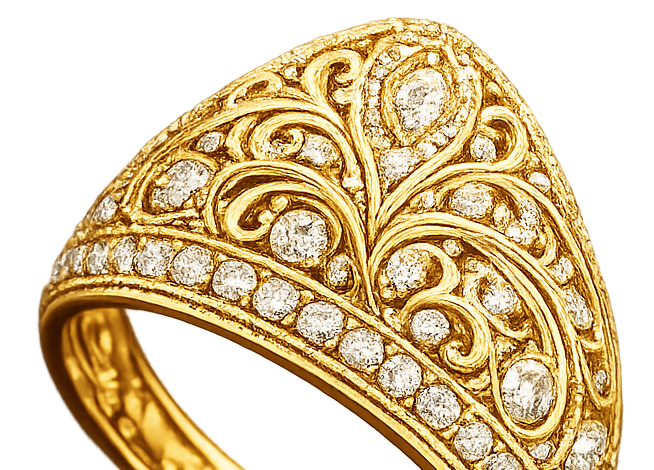 صياغة الذهب باحترافية عالية ودقة في التفاصيل، مع اهتمام بالجودة ونقاء العيار لضمان الجودة وتصاميم تعكس أصالة الحرفة.